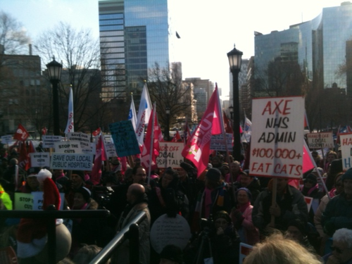 More than 3,000 people, including dozens of Londoners, have rallied in front of Queen’s Park to protest proposed changes to the province’s health care system. The demonstration, which began at noon on Friday, is in response to concerns the province is looking at contracting hospital services out to private clinics. .